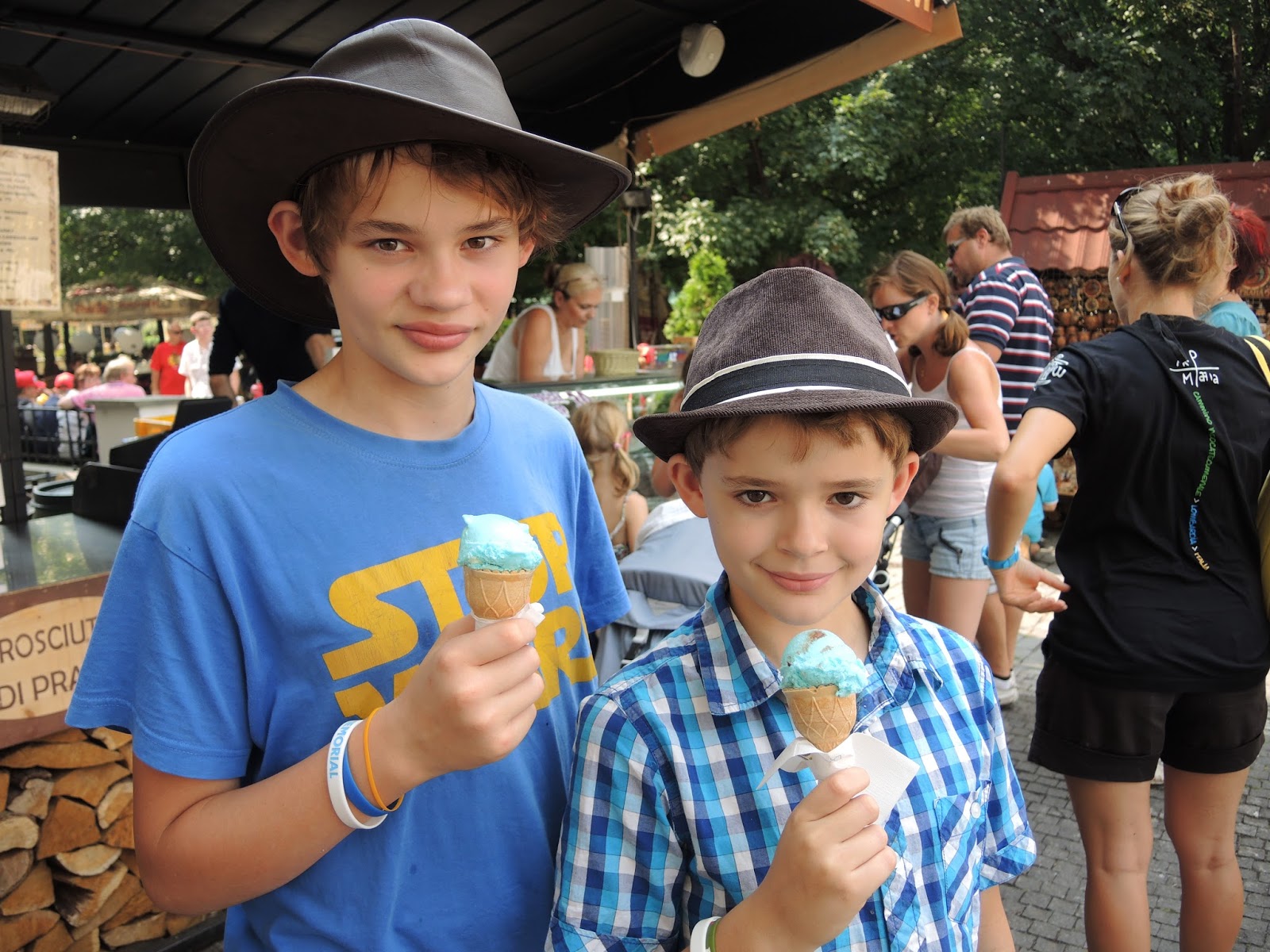 Generous thick slices of rye bread, mustards and large steins of cold beer all crammed onto the tiny table. We were too full to contemplate the challenge and settled for a small cone of homemade Smurf ice cream before slowly winding our way back home.